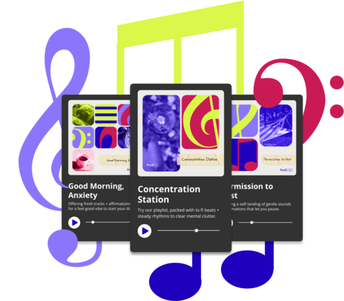 The playlists meet common moments many of us recognize: Good Morning, Anxiety to ease into the day, Concentration Station to find your focus, and Permission to Rest to slow down at any time. Each mix blends music and gentle prompts designed to help listeners reset without pressure or perfection.