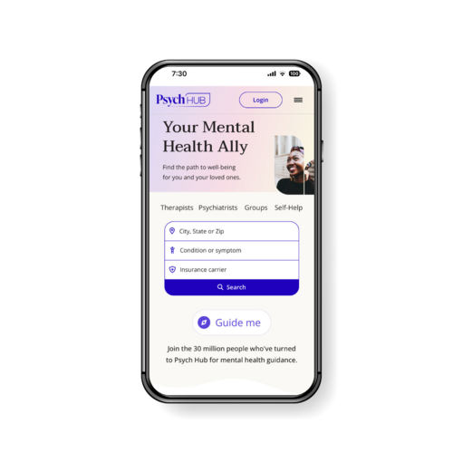 Navigating the mental health landscape can be overwhelming for those seeking support for themselves or their loved ones. Psych Hub's mobile-first experience on psychhub.com simplifies this process through an intuitive and proprietary Well-Being Assessment, guiding users to better understand their conditions and preferences for care. After completing the assessment, individuals receive a custom Well-Being Profile that features a variety of care options targeted to their needs, including a curated list of licensed, vetted behavioral health providers that accept their insurance as well as sub-clinical options such as self-help apps and video guides.